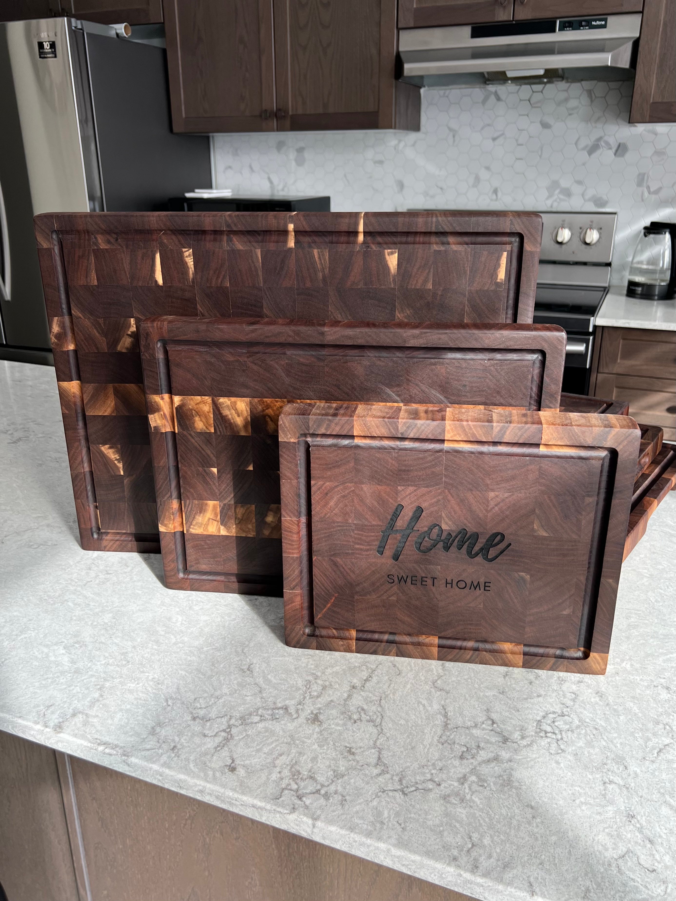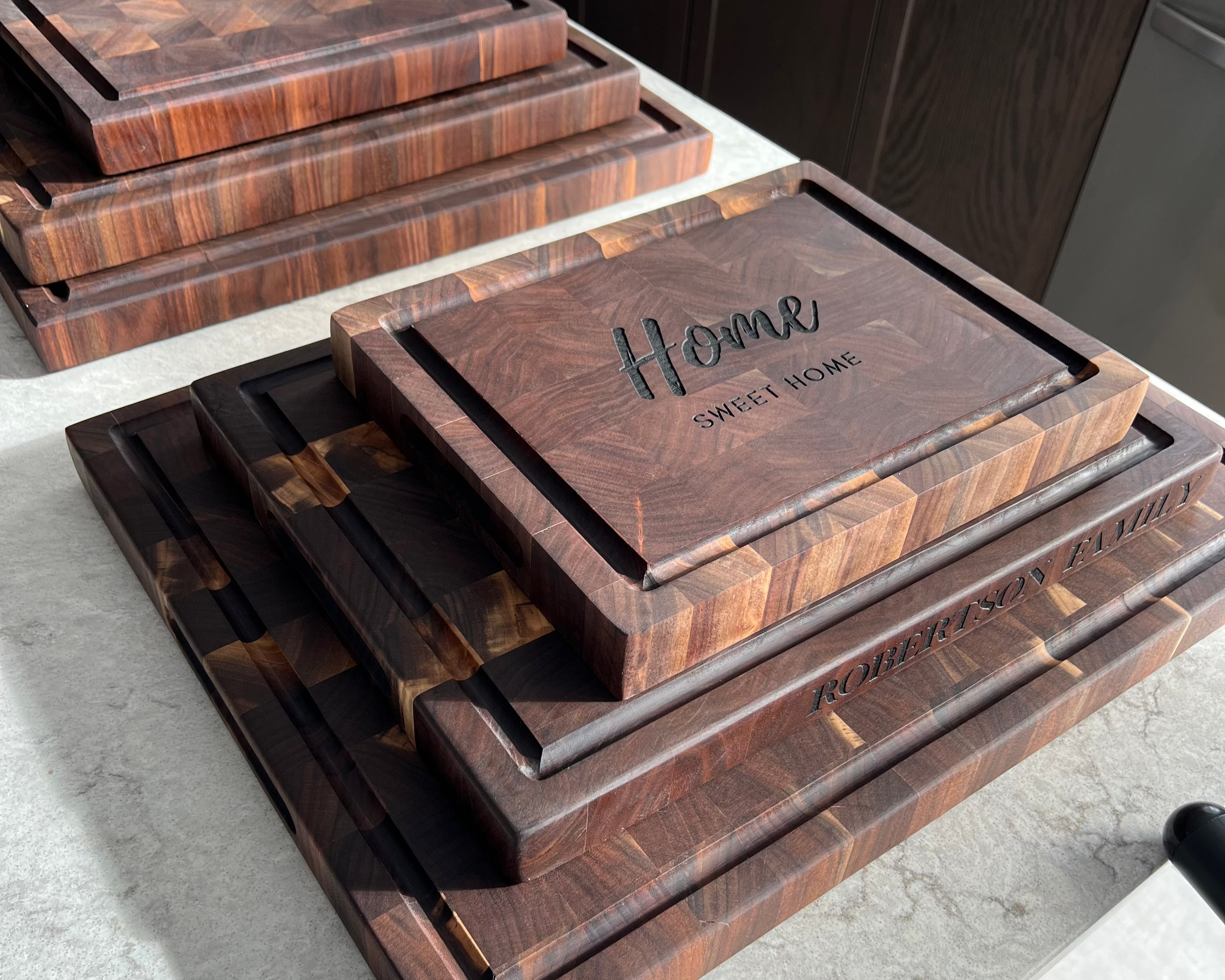 Built with end grain construction, these black walnut boards are naturally antibacterial, gentle on knives, and self-healing—allowing knife marks to close over time and helping preserve the board’s appearance for years to come.